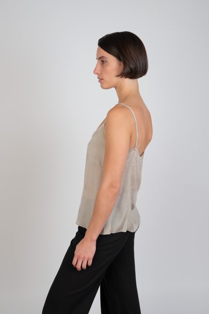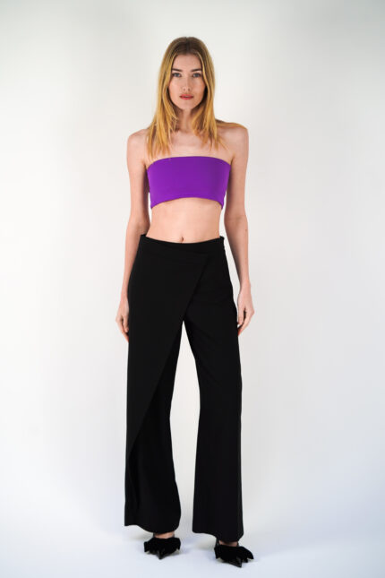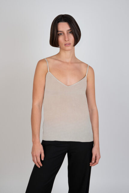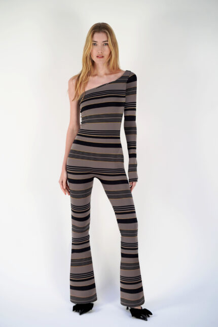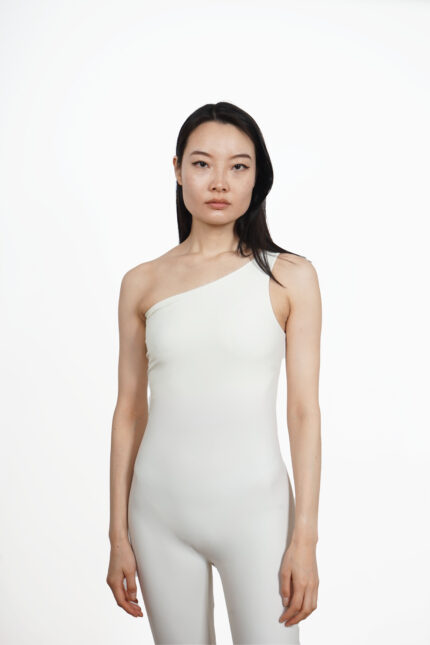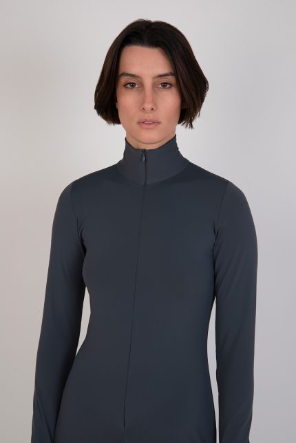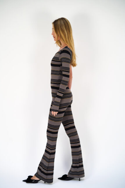 Le Body Anaïs est confectionné à partir de maille côtelée issue de stocks dormants. Il présente une bande large le long de son encolure, dévoilant délicatement les épaules. Le mannequin mesure 1,77 m et porte une taille 36 (S).